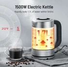Versatile Electric Kettle for All Your Beverages This Paris RhOne 1500W glass electric kettle brings up to 1.7L of water to boil quickly within 5mins, making it possible for you to enjoy hot drinks instantly. Includes six integrated temperatures to brew a wide variety of beverages such as tea, coffee, and more to perfection. The electric kettle sports an advanced Strix thermostat, ensuring incredibly precise temperature control, and boil-dry protection for safe operation. You’ll be proud to display this premium stainless steel and glass kettle on your kitchen counter. Functions: 1500W Speedy Boiling 1.7L Large Capacity 6 Temperature Settings 40mins Keep-Warm Mode Smart Touch Control Digital Display Screen Glass Kettle with Measurement Marks Removable Rustproof Filter, Lid, and Stainless Steel Spout Precise Strix Thermostat Auto Shutoff & Boil-Dry Protection Detachable Lid & Anti-Skid Heating Base Comfort-Grip Handle Specifications: Brand: Paris Rhone Material: Stainless Steel & Glass Power Supply: 120V-60Hz Rated Power: 1500W Capacity: 1.7L What’s in the Box: 1 x Paris Rhône Glass Electric Kettle 1 x Power Base 1 x User Guide Time-Saving & Energy-Efficient: 1500W electric kettle generates heat quickly to boil 1.7L of water within 5mins, as it serves up to 8 cups (200ml per cup) at a time, it’s the perfect kettle for home or office Satisfy Your Needs: In-built Strix thermostat guarantees stable performance and extreme temperature accuracy; choose from six preset temperatures optimized for all your favorite drinks Smart & Convenient: Use the buttons on the handle to boil, adjust the temperature, and enter the 40min keep-warm mode; LED screen displays the current water temperature Premium Quality & BPA Free: Supremely robust 304 stainless-steel construction provides an elegant look that resists rust, and the heat-resistant glass with measure marks ensures you boil the exact amount of water required Safe Boiling: Boil-dry protection shuts down the kettle automatically when there is little or no water left inside, safeguarding your experience and making your kettle last longer