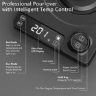 Elevate your tea and coffee brewing experience with this sleek and precise electric kettle. Designed with a gooseneck spout and ±1°F temperature control, it allows you to achieve the perfect water temperature for optimal flavor extraction. Crafted with a durable 304 stainless steel inner body, this 1L kettle boils water quickly and efficiently. Its elegant black finish adds a touch of sophistication to any kitchen countertop. With its user-friendly design and rapid heating capabilities, this electric kettle streamlines your morning routine, ensuring a delightful cup of coffee or tea every time. Precise Temperature Control: The LCD screen showcases your chosen Set Temp and Real-Time Temp,104 ° F-212 ° F temperature control,Enjoy your beverages at the perfect temperature with ±1°F accuracy, ensuring optimal flavor and aroma. Rapid Heating: The 1200W heating element quickly boils water,Formula Auto Shut Off, saving you valuable time in the morning or whenever you need a hot beverage. Gooseneck Design: The sleek gooseneck spout allows for precise pour control, ideal for brewing specialty coffee & tea & powdered milk. PUREST TASTE:The durable interior, lid and spout of the pour over kettle are made from food grade 304 stainless steel, 100% BPA-Free; enjoy a longer lasting product without having to worry about any plastic taste. Generous Capacity: With a 1L capacity, this electric kettle can accommodate multiple servings, making it perfect for households or small gatherings. Brew Stopwatch - With the built-in exact stopwatch, you can check the brew time on the screen at any time to adjust the rhythm of pour over coffee. After counting down for three seconds, the stopwatch will begin to run at zero. 24 HOURS KEEP WARM:Electric Kettle water boiler supports a temperature from 1 to 24 hours,you just need to press the "KEEP WARM" button before going to bed at night and set the desired keep warm time with the rotary adjustment button, the next morning you can enjoy a delicious coffee right away. Turn-off Beep: If you don't want the beep, you can turn it off.