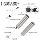 【QUICKLY WHIP UP CREAMY FROTH】: This portable handheld milk frother is made of high-quality materials and its powerful motor can froth your coffee drinks with rich and creamy foam in less than 20 seconds, you can easily make professional-grade milk froth at home 【ERGONOMIC & PORTABLE DESIGN】: This lightweight coffee frother comes with an luxery stainless steel finishing(Matt), comfortable non-slip grip ensures precise control during operation, allowing you to effortlessly create a beautifully frothy milk froth. Designed in a portable size, it's perfect for traveling, camping, or even for use in small kitchens to enjoy creamy, full-bodied coffee anytime, anywhere. 【3 Whisks and 3 Speed Adjustable】:3 adjustable whisk speeds available for more options. Low speed is used for stirring egg yolks, egg whites, and powdered drinks. Medium speed is used for making jam, matcha, and baby food. High speed is used to stir milk or coffee foam, fluffy whipped cream. 3 interchangeable whisks: Spring whisk for frothing milk and coffee and making delicious drinks; Balloon whisk for mixing eggs and whipping cream; HOOK WHISK for mixing powders, making jam and baby food. 【USB-C Charging Long Battery Life】: Our electric frother is equired with USB charging design, which is more environmentally friendly and lighter than the battery type,you may charge it anytime and anywhere. It can be your ideal coffee-mage at home, in the office, or even taken out for camping. The built-in battery capacity is 1200mAh, which can be used several times a day after being fully charged. This drink mixer handheld also includes a charging indicator light that lights up red when charging and green when fully charged. 【Cleaning&Storage Friendly】: It's effortless to clean. Just easily remove the attachment, and then place the whisk in water or soapy liquid, and then press the button to let eddy water current clean it completely. There is a compact stainless steel stand for easy and accessible storage. 【GOOD GIFT】: This portable handheld milk frother is a must-have tool for coffee lovers or baristas, and makes a great gift for friends, housewarmings and outdoor camping trips.