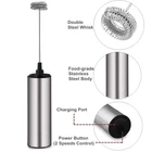 Specifications: Power: Built-in Rechargeable Batteries (INCLUDED) Speed: Two Speed (18,000RPM and 21,000 RPM) Material: Stainless Steel, ABS Package Includes: 1 x Milk Frother 1 x Milk Frother Cover 1 x Double Whisk 1 x USB Cable for Charging 1 x Milk Frother Pitcher (12 oz / 350ml) 1 x User Instruction [THE MOST PROFESSIONAL MILK FROTHER] electric milk frother create rich creamy froth just like the professional baristas. Whether you invite family or friends, froth foam for your coffee, or send as a gift to your friends, we guarantee our milk frother will be the best maker of thick, creamy and delicious froth. [THE FASTEST HANDHELD COFFEE FOAMER] This mini rechargeable milk frother with cover is portable for traveling, home and office. With the double steel whisk and the super motor (two speeds:18,000 rpm and 21,000 rpm), this coffee frother machine can froth foam in as fast as 12 seconds. Besides, it also can be used as stirrer for hot or cold/frappe drinks and as small blender for cocktail, milkshake, hot chocolate, soup, or even as eggs whisker beater. [THE FOOD GRADE COFFEE FROTHER] The whole body of electric handheld coffee frother is made of food grade stainless steel, as well as the double steel whisk. The stainless steel design will also keep the coffee frother clean. [THE BEST DESIGN FOR USING AND WASHING] By pressing the Power/Speed Control button on the top of the milk foamer, it will start to make milk foam in the speed of 18,000 rpm. With the 2nd press, the speed will turn up to 21,000 rpm. The detachable design, will help you wash the whisk faster and easier than other designs. [THE BEST PRODUCT GUARANTEE] We are confident of this milk frother and know you will love it, just in case you are not satisfied with the product, you are allowed to return it for a 100% refund of your money for 3 month. So, what are you waiting for? Order it today! And, we will send you a free milk frothing pitcher (12 oz / 350 ml) and electronic coffee recipes (will be sent via message center) as gift! Let’s start to enjoy delicious creamy foam drinks with electric milk frother!