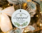 Engaged Christmas Ornament - Custom Engagement Keepsake Burgundy - Personalized First Christmas Engaged - Engaged 2024 OR-0046 If you need to buy more, please inbox us We have two material options (Ceramic & MDF), please read the product description as below to choose your favorite options. MDF Ornaments 1-sided design. Print type: Sublimation printing. Crafted from durable MDF with a high-gloss plastic finish so your designs last a lifetime. Shapes: Round, star, heart and oval . Product Dimensions: Circle & Heart, 2.75” tall; Oval & Star, 3.25” tall. Ships with a festive gold cord for easy hanging. CERAMIC Ornaments 125" (3mm), 2.75" height (circle), thick high-quality porcelain One-sided print Hole for the hanging string Gold-toned string included Available in 4 shapes - Snowflake, Star, Heart and Circle The height of the hole can slightly deviate Shipping, Return and Refund Policy On average, merchandise is produced and shipped from our facility 2-4 business days after purchase. Standard Shipping: 5-7 working days for USA. Please contact us if you have any dissatisfaction with the item you buy so that we give you the solution. It is easier for us to handle your issue if you send us the proof like an image. We can replace another within 30 days without fee if the item is defective, damaged, or an error is made on our end.