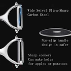FUHUY Vegetable, Apple Peelers for kitchen, Fruit, Carrot, Veggie, Potatoes Peel Features: 【Multi-Purpose Vegetable Fruit Peeler】 best for potato, vegetable, apple, veggie, carrot, mango, cucumber, tomato, onion, pear and more. Built-in potato-eye remover, high-quality kitchen utensils peeler. 【Dishwasher Safe & High Quality Material】The top high-quality rust-free carbon steel metal blade which better than stainless steel, and the zinc alloy body guaranteed non-rust, High-quality and anti-corrosion, dishwasher safe and easy to store. 【Ergonomic Design】Streamlined design makes peeling action smooth, meanwhile, the hand (Left Hand and Right Handed) won't feel uncomfortable, also good for arthritis hands. 【Peels Easy And Save Time】Ultra-Sharp wide swivel slade can maintain minimal resistance when peeling, and perfect fit the fruit or vegetable skin, won't clog with peels, save both time and labor! 【Good Grip and Non-Slip】The rubber part will keep the handle non-slip when your Hands or Peeler get wet. Y Shape Blade holder Can stably control the Peeler so that the blade is stressed uniformly and remove the skin correctly, perfect for both right and left hand. Features: 【Multi-Purpose Vegetable Fruit Peeler】 best for potato, vegetable, apple, veggie, carrot, mango, cucumber, tomato, onion, pear and more. Built-in potato-eye remover, high-quality kitchen utensils peeler. 【Dishwasher Safe & High Quality Material】The top high-quality rust-free carbon steel metal blade which better than stainless steel, and the zinc alloy body guaranteed non-rust, High-quality and anti-corrosion, dishwasher safe and easy to store. 【Ergonomic Design】Streamlined design makes peeling action smooth, meanwhile, the hand (Left Hand and Right Handed) won't feel uncomfortable, also good for arthritis hands. 【Peels Easy And Save Time】Ultra-Sharp wide swivel slade can maintain minimal resistance when peeling, and perfect fit the fruit or vegetable skin, won't clog with peels, save both time and labor! 【Good Grip and Non-Slip】The rubber part will keep the handle non-slip when your Hands or Peeler get wet. Y Shape Blade holder Can stably control the Peeler so that the blade is stressed uniformly and remove the skin correctly, perfect for both right and left hand. eBay integration by