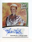 Description: Fantasy Worlds of Irwin Allen Lost in Space Marta Kristen Autograph Card A7 Contents: Authentic autograph card A7 featuring Marta Kristen as Judy Robinson. Manufacturer: Rittenhouse Archives, 2004. Condition: Mint/near mint.