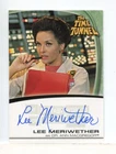 Description: Fantasy Worlds of Irwin Allen The Time Tunnel Lee Meriwether Autograph Card Contents: Authentic autograph card A3 featuring Lee Meriwether as Dr. Ann MacGregor in the television series "The Time Tunnel." Manufacturer: Rittenhouse Archives, 2004. Condition: Mint/near mint.