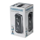 Product details - Farberware Can Opener Black,70W,120V~60HZ - 1) Stainless steel blade with removable lever - 2) Detachable cutting head - 3) Built-in bottle opener - 4) Extra tall body opens different sized cans from small to tall - 5) Built-in knife sharpener - 6)Cord storage - 7) Auto-stop safety function Farberware Can Opener Black, small kitchen appliance. 120V~60Hz~70W, the black power cord is exposed 66cm . The body is red high-gloss injection molding, 70W motor. The product has stainless steel decorative sheet drawing treatment, the switch lever is black injection molded. The blade and the can opening gear are stainless steel. There is a sharpening stone on the black of the product. Detachable cutting head. Built-in bottle opener. Specifications Brand Farberware Manufacturer Part Number FW61100027737 Color Black Assembled Product Dimensions (L x W x H) 14.19 x 13.69 x 24.99 Inches