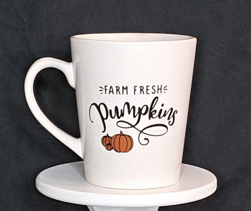 Farm Fresh Pumpkins 12 Oz White Coffee Mug with Black Letters
