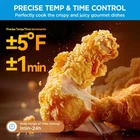 Flexify French Door Toaster Oven Air Fryer Combo, QT, Extra Large Air Fryer Countertop Oven 10-in-1 Combo, 25% Faster Cooking and 90% Less Oil, Stainless Steel Cyclone Air Fryer: Enjoy 25% faster cooking and 90% less oil compared to traditional fryers, . This all-in-one combo features VDE-certified heat evenness with one convection fan and six heat tubes, allowing it to heat up quickly and eliminate the need for preheating when using the air fry function. Versatile 10 Functions: Air Fry, Roast, Bake, Broil, Toast, Pizza, Reheat, Slow Cook, Dehydrate, and Warm. Prepare your family meal in a more flexible way. Large Capacity: QT French door air fryer toaster oven combo, perfectly fits one 12-inch pizza, up to 6 slices of toast, or 14 juicy chicken wings, making it an ideal addition to your kitchen. Precise Temperature and Time Control: 5-degree Fahrenheit increments for temperature adjustment and one-minute increments for time, with a wide range from 100° to 450°F. Elegant design: Stylish anti-scald double French doors and large LED digital display adds aesthetic to your cooking space. Includes a crumb tray, air fry basket, baking rack, and baking tray for your cooking and baking needs. Elevate your kitchen with the Flexify French Door Air Fryer Oven, a 'Best of KBIS' winner in 2024. This stylish air fryer oven combines elegance with practicality, offering professional air-frying capabilities and versatile cooking modes to meet all your culinary needs. It can handle everything from breakfast for your kids to a large gathering, helping you prepare delicious meals for every occasion. Flexify FAQ: 1. About Preheat Function With Flexify's powerful Air Cyclone technology, the oven heats up quickly, eliminating the need for preheating when using the air fry function. Simply place frozen foods directly on the frying basket and start the air fry program. No preheating required – just crispy, healthy results. 2. About Stop or end the Program during oven working While the oven is running, press and hold the Stop button for 3 seconds to pause the current program and choose a new function. 3. How to use accessories in the box: Crumb Tray: To ensure optimal cooking performance, place the crumb tray at the bottom of the oven, below the heating element. Allow the tray to cool completely before cleaning. Air Fry Basket: When using the air fry function, place the air fry basket on the rack and spread food evenly within the basket for the best air frying results. Baking Rack: For baking bread, pizza, and other items, use the baking rack to achieve a crispy crust on both sides. Baking Tray: Use the baking tray to hold batters, fillings, and to maintain the shape of cakes, cookies, and puddings. 4. How to clean my air fryer oven? -Power off and cool down: Always unplug the oven and allow it to cool completely before cleaning. -Remove the crumb tray: Remove the crumb tray from the oven and clean it with warm water and dish soap. -Clean the interior: •For light stains: Wipe the interior, door, and heating elements with a soft cloth and warm water. •For stubborn stains: Create a paste of baking soda and water, apply it to the stains, let it sit for a few minutes, then scrub. -Clean the exterior: •For standard materials: Wipe the exterior of the oven with a soft cloth and warm water. •For stainless steel: Use a stainless steel cleaner. -Clean the glass door: Clean both sides of the glass door with a glass cleaner. -Dry thoroughly: Ensure the oven is completely dry inside and out after cleaning. 5. Temperature Warning The top exterior and glass door will become hot during operation. Avoid direct contact to prevent burns.