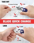 Safe to use. This knife cutter features a quality steel handle and an anti-slip ABS grip, providing more security. The ergonomic curve of the handle fits your hands. No need to worry about the blade slipping from your hand while working. Also, our razor knife is built with a back lock that safely keeps the blades in place, allowing one-hand easy opening and close Quick-change mechanism. Your brand-new work knife comes with an easy blade release mechanism that allows you to safely change the blades and helps prevent injury. Just push the head cover of the blade and drop down the cover of the blade. Our utility knife is compatible with most standard-sized utility knife blades for extra convenience Portable & lightweight design. Our box cutter knife is lightweight and compact, making it easy to take anywhere. It comes with a belt clip, so you can quickly clip it on and off. Carry it with you on your belt, pocket, or bag so you’ll always have it when needed. You can store up to 5 extra blades in the handle Use for various applications. WORKPRO utility knife is built to last. It can be used for various jobs that you may need to get done. It cuts through paper, carpet, plastic, cartons, cloth, bags, leather, PVC, drywall, and more. Get more work done with our sturdy cutter knife Long-lasting utility blades. WORKPRO folding utility knife is made from quality steel which makes it sturdy and long-lasting Product Description WORKPRO Utility Knife & Blades Add to Cart Add to Cart Add to Cart Add to Cart Add to Cart Add to Cart Add to Cart Customer Reviews 4.6 out of 5 stars 10,403 4.7 out of 5 stars 1,820 4.7 out of 5 stars 3,551 4.7 out of 5 stars 1,465 4.7 out of 5 stars 3,551 4.7 out of 5 stars 17,605 4.8 out of 5 stars 1,232 Price $9.99 $ 9 . 99 $15.99 $ 15 . 99 $14.99 $ 14 . 99 $15.99 $ 15 . 99 $14.99 $ 14 . 99 $9.99 $ 9 . 99 $14.99 $ 14 . 99 Foldable ✔ ✔ ✔ ✔ ✔ ✘ ✘ Retractable ✘ ✘ ✘ ✘ ✘ ✘ ✘ Quick Blade Change ✔ ✔ ✔ ✔ ✔ ✔ ✔ Blades Storage ✔ ✔ ✘ ✘ ✘ ✔ ✔ Extra Blades 5 15 10 — — 100 100 1 5 Extra Blades in Handle 2 Thumb Rest 3 Sharpe Blade 4 Belt Clip Blade Storage in the Handle Push the button to open the storage compartment Back-Lock Release Push here to close the utility knife Belt Clip Design Stainless steel belt clip for easy access Long-lasting Use Heavy duty construction for contractor use