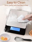 Food Scale -33lb Digital Kitchen Scale for Food Ounces Grams Rechargeable NEW Our Food Kitchen Scale equips four high-precision load sensors, waterproof Anti-collision glass weighing panel. Large measuring capacity with 1g precise graduation from 0.1oz/3g to 33 lbs/15kg. 5 commonly used measurement units(g/kg/lb:oz/oz/ml). Screen touch and LCD display make it easy to use and read. 7.9 x 5.7 x 0.6 in stainless steel panel provide more stability and space for larger containers. The Tare button allows you to subtract the weight of mug, plate, or different sized bowl, making it easy to achieve accurate readouts of nuts, grains, powder, fruit, milk and more food. With a 2min Auto-off function, no need to worry about power consumption. Power-low alarm and overload remind. Hanging hook and 4 no-slip rubbers. Easy to clean and store.