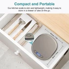 Precise Measurement: Our food scale provides accurate and reliable measurements up to 33 lb . Ensure your cooking and baking ingredients are perfectly measured for consistent results every time. Sleek and Space-saving Design: With its compact and slim design, our food scale takes up minimal counter space. It's ideal for small kitchens or those looking to optimize their workspace. Multifunctional and Versatile: This food scale offers various units of measurement, including grams, ounces, pounds, and kilograms. It can be used for measuring ingredients, weighing portions, or even for tracking your food intake for a healthier lifestyle. Easy-to-use and User-friendly Interface: Our food scale features a clear and intuitive display, allowing for effortless operation. The responsive buttons and convenient tare function make it simple to set up and use even for beginners. Durable and Easy to Clean: Crafted with high-quality materials, our food scale is built to last. The sleek surface is easy to wipe clean, saving you time and effort in maintaining its hygiene.