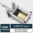 French Fry Cutter, Sopito Professional Potato 1/2'' Blade, Silver Product Details Brand: Sopito Product Dimensions: 5.58"L x 5.22"W x 7.87"H Material: Stainless Steel Color: Silver Special Feature: Portable,Interchangeable Blades Recommended Uses For Product: Vegetable Product Care Instructions: Hand Wash Only Blade Material: Stainless Steel Item Weight: 5 Pounds Blade Length: 0.5 Inches Blade Shape: Square Operation Mode: Manual Manufacturer: Sopito UPC: 616010013833 Item Weight: 4.99 pounds Item model number: V6 Is Discontinued By Manufacturer: No HIGH QUALITY BLADE: Made of high quality stainless steel, robust, restaurant-grade blade engineered for years of use., slice fast and easy to use, just with little effort for cutting the potato, carrots, cucumbers, eggplant, onion into 1/2 inch thick strip ERGONOMIC HANDLE DESIGN: Extended handle makes everything easier to make homemade fries. With a single lever action you can squeeze through potatoes with ease NO NEED TO QUARTER OR HALF CUT THE POTATOES: The cutter box can takes 5.58*3.51inch potatoes, the capacity of this cutter is big enough for most potatoes, sweet potatoes and other vegetables. Cuts the entire potato in one go CONVENIENT FOR ALL: Cuts fries in 1/2" pieces. Also great for zucchinis, cucumbers and other vegetables, fruits into perfectly shaped sticks in seconds. Create stunning French fries, sweet potato fries, etc. For thinner 3/8 Inch blade, you may check our store and search 3/8 inch blade SPACE SAVING AND EASY TO CLEAR: Unlike commercial French fry cutter in the market, which takes too much space, this potato cutter has small volume as well as commercial grade quality. Easy to clean with water, never be worried about rinsing and rust, use the cutter easily