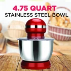 Easily make your favorite cakes and multiple batches of cookie dough with the 4.75Qt stainless steel mixing bowl with comfortable handle. With 8 speeds, the standmixer will quickly become your kitchen's culinary center as you mix, knead and whip ingredients with ease. Complete bowl coverage No scraping necessary; mix Hands free with excellent results every time; Planetary mixing rotates the beaters around the 4 quart, stainless steel bowl, for even and complete mixing Mix pizza and cookie dough with ease; effortlessly mix Thick batters and doughs like breads, cookies and more with a powerful, 300 watt motor 8 speeds & mixing guide; go from a slow stir to a fast mix, with exact control at each one; a helpful guide at the mixer’s top lets you know which speed to use for various mixing methods Splash guard, dough hook, whisk and flat beater included; for more mixing versatility 33° adjustable arm lift, 4.5L brushed stainless steel 304 bowl, Pure copper AC motor, Low noise (75Db at highest speed)
