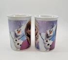 These Coffee Cups from the Frozen Movies features Sisters Anna and Elsa and the Snowman Olaf. They are beautiful cups for any season but especially the Holiday season. Set of 2 Each cup is approximately 4 inches Tall, 3 inches across the Top and 2 1/2 inches across the bottom. There are no chips. Each item is carefully packaged to prevent any damage and is shipped immediately with tracking.