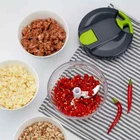 [Strong and Durable]: This mini food processors is made of food-grade PP plastic, which can safely produce a variety of food for your family. The blade is made of stainless steel which can even make the minced meat easily, and the overall structure is very strong. [Operation Steps]: 1. Cut the food into small pieces then put it in the box; 2. Close and tighten the lid towards the left ; 3. Pull the handle several times to chop the food; 4.Pour out the chopped food from the food chopper and put it into the bowl. This vegetable chopper is suitable for cutting celery, ginger, carrots, tomatoes, onions, garlic, peppers, fruits and meat, etc. [Design Details]: This food chopper adopts an ergonomic design. You can press the body of the chopper with one hand and pull the pull-tab with the other hand to ensure not shake while using. The capacity is 500ml, which can meet the needs of processing different food at the same time. The weight of the product is only 210g, which is very light,It is easy to carry and you can store it in anywhere. The pull-tab design of the handle prevents slipping during use. [Easy to Clean]:The blade, cover and bottom body of this vegetable cutter are detachable for easy cleaning,It can be rinsed under running water, but it cannot be rinsed in a dishwasher, moreover,in order to avoid residual food residue becoming hardened, it is recommended to rinse with water after using directly. [Suitable for Kitchen]: This highly efficient and multifunctional vegetable cutter is not only suitable for home kitchens, but also for professional kitchens. It can be used to chop vegetables, fruits, meat, etc.It is a good helper for the kitchen