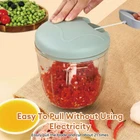 Features: 1: Powerful and versatile, great for chopping vegetable salads, nuts, herbs, veggies, pesto, boneless meats and more. 2: Compact and safe to use, perfect for small kitchens, RVs, traveling and camping. Made of BPA free plastic. 3: Lid and shell are made of high quality ABS material. Sturdy nylon drawstring design for added abrasion resistance and quick rebound. Parts can be separated for easy cleaning. 4: Makes food preparation fun and easy. Just pull the cord a few times to chop/mix your ingredients. 5: Designed for the perfect chopping job, featuring sharp stainless steel blades for fast chopping, a comfortable soft lid, and a non-slip base for added stability. Large handle for easy use. Specification: Product name: garlic chopper Product material: ABS + stainless steel Blade material: stainless steel Capacity: 500ML/900ML optional Packing list: 1x garlic chopper