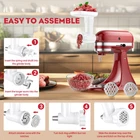 Special Design for Kitchenaid Mixers: strainer for Kitchenaid includes fruit and vegetable strainer attachment, meat grinder attachment for kitchenaid mixer, the strainer can help you to make tomato sauce, apple sauce, baby food and more, the grinder can ground meat with great texture for sausages and burgers. Both of them are the best helper for you kitchen. Fruit and Vegetable Strainer Attachment: For kitchenaid food mill strainer, it’s better for the fruit like apples, tomatoes, for the stiff fruit, it should be cooked pulp first so that easily passes through the little holes, and other parts (stems, seeds, skins) which you want to separate. For the tomatoes, you need cooked it first, which easily separate the seeds, stems, woody parts and any tough skins pass out the end. Food Grinder Attachment: The meat grinder for kitchenaid mixer includes includes 2 Grinding Blades, 2 Grinding Plates, 2 Sausage stuffer Tubes, 1 Retainer Ring. The meat grinder attachment is made of Food grade material, grind fresh meat for sausages and burgers, vegetables for salsas & sauces, hard cheeses, fresh bread crumbs. And the two size sausage stuffer tubes allows you to make any kinds of sausage. Easy to Use The Strainer: Cook all tough or firm fruits and vegetables before straining, cut into pieces that will fit into hopper, remove the hard thick skin, the strainer attachment will separate the peels, you will get the pristine pureed fruits juice or vegetables. Easy to Clean with Dishwasher Safe: All fruit strainer and meat grinder parts for kitchenaid are detachable, it’s dishwasher safe and easily to clean with soap, warm water (must be below 122°F) and the brush provided.