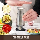 Bullet Points: Build to Last: Crafted with excellent grade PP and stainless steel, this garlic press boasts perfect durability and immunity to rust, ensuring sturdiness and longevity Efficient Garlic Chopping: Our stainless steel garlic press features a 304 anti-rust cutter that enables easy chopping of garlic, onion, chilli, and more. Its compact design and exquisite cutter prevent deformation and ensure durability, enhancing your cooking efficiency Kitchen Aesthetics Booster: With effective stain removal and perfect workmanship, this stainless steel garlic press has a sleek and polished exterior that boosts the overall aesthetics of your kitchen. Its electroplated surfaces ensure easy cleaning, while its exquisite design adds to the sophistication of your kitchen decor High Working Efficiency: Achieve high working efficiency with our garlic press stainless steel. Its multi-functional design makes chopping and processing ingredients a breeze, helping you save time and effort. Enjoy easy cooking and explore new recipes Practical and Convenient: Impress your loved person with this sturdy garlic press stainless steel; perfect for presenting on any occasion. Use it at home, while camping, or on picnics; compact, lightweight, and easy to carry, it won't take up much space in your kitchen or bag Enjoy effortless garlic mincing with our hand press garlic chopper! Made of high-quality materials, it features exquisite craftsmanship and a compact design that makes it easy to store and carry. This kitchen gadget is not easy to rust and promises high working efficiency. Perfect for home use, camping, and picnics. Specification: Product name: Garlic Press Mincer Material: Stainless steel Product weight: about 160g Product size: about 5.9x5.9x16cm/2.32x2.32x6.3 inches Packing List: 1 x Garlic Press Mincer Note: Due to different lighting and screen settings, the item color may be slightly different from the picture. Due to different manual measurements, please allow a 1-2cm difference in size.