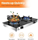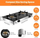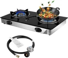 Material Stainless Steel, Glass Special Feature Gas Stovetop Compatible Brand Unbranded Heating Elements 2 Product Dimensions 17.5"D x 30"W x 5.5"H Controls Type Knob About this item 【Heat Output】--The propane cooktop has an automatic ignition function and features fast heating speed to achieve even heating and fast cooking, so the deliciousness doesn't have to wait for a long time. 【Easy to use】Portable design gas cooktop with automatic ignition, compact, easy to install, complete with accessories - 1 manual, 2 burner caps, 1 gas regulator and hoses included 【Tempered Glass+ Stainless Steel】The stove of panel is made of explosion-proof tempered glass with three layers of protection, and the main body is made of stainless steel, which is a wear-resistant, impact-resistant and decay-resistant material. Long service life 【Easy to Clean】With smooth glass as the tabletop, propane gas stove is very easy to clean after use, and the dirt can be cleaned up by gently wiping. Clean it in time after use, and it will look new even use for a long time. 【Portable Gas Stove for Indoor and Outdoor】 Portable 2-burner gas cooktop is easy to carry around and can be used in both indoor home kitchens and is perfect for outdoor kitchens, barbecues, camping, RVs, and other occasions. Product Description Portable Double Stove for Differents Cooking Needs This gas stove is suitable for both home kitchen and outdoor kitchen, is a good helper for cooking, frying and simmering can easily solve the cooking needs! Daily use for warming up milk, quickly frying steak, omelette, or small stew is very convenient and practical! 2 Burner Gas Cooktops with Exquisite Detail Heating & faster Cooking Burners Each burner is made of cast-iron,fire cover is made of quality brass, which are resistant burning and safe for use. High heat output gas stove powered 19,000 BTU,Heats up food quickly for fast cooking Automatic Ignition with Adjustable Control Knob Quick and easy ignition, easy to operate switch and knob to control the fire size. Comes with Complete Accessories The gas cooker comes with a CSA approved gas regulator and hose, which you can use without having to buy them separately and which are certified for safety during use. IMPORTANT SAFEGUARDS and MAINTENANCE IMPORTANT SAFEGUARDS 1.Be careful to avoid getting burned by touching the top panel of the table gas stove, as it gets very hot near the burner when in use. 2.Do not apply excessive pressure to the gas control knobs. 3.To avoid damage, do not place charcoal on the burners. 4. The electronic ignition will not work if it get wet. Prevent the ignition system from water, soup, other liquid etc.on it. 5.Keep the burners clean and avoid to become clogged. 6.Keep the table gas stove clean for better efficiency and extend its service and operation life. 7.Make sure that there are no inflammable objects near the table gas stove. 8.Be sure to turn off the control knobs of the table gas stove and the main gas valve of gas bottles as well after use. 9.Check the rubber hose which connect the gas stove to the gas bottle regularly for wear or leak.It must be replaced regularly. Keep it away from heat source and keep it clean. CLEANING & MAINTENANCE glass part: Use sponge or cloth soaked in soap and warm water. Avoid using cleaning powders or harsh abrasive which may cause scratching of the surface Burner & trivet part: Clean the removable part using sponge or cloth soaked in soap, like burner and flame ring should be dried and put correctly Stainless steel part: Use the soft rag or sponge to clean
