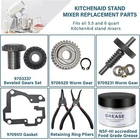 Worm Gear Kit Compatible With KitchenAid Whirlpool 5QT & 6QT Mixer Gear Parts Replacement, Worm Follower Gear Kit 9706529 W11086780 9709511 9703337 9709231 【worm gear kit includes】1 x 9709511 Gasket; 1 x 9703445 Thrust Bearing; 1 x 9709231 WP9709231 Worm Gear; 1 x 9703337 9703338 Mixer Bevel Gear Kit; 1 x 9706529 W11086780 Worm Gear& Snap Ring; 1 x Retaining Ring Pliers. 【9706529 Worm Gear Replaces part numbers】9709511, 9706529, 9703543, 1094120, 1426121, AP3594375, AP6013715, AP4326018, AP6013805, AH774065, AH1488426, EA774065, EA1488426, WP9706529, PS774065, PS11746942, PS1488426, PS11747032, PS11746905 【9703337 Beveled Gears Set Replaces Part Numbers】4161404, 4169868, 4582676, 9703337, W11044501, W11175144, AP6286924, W11192795, WP9703337, WP9703338, PS12348886, WPW11192795 【9709231 Worm Gear Replaces Part Numbers】9709231, 9703446, 9703699, 9706590, 9706769, 9706770, WP9709231, AP6013785, PS11747012 【9709511 Gasket Replaces part numbers】9707425, 9703381, WP9709511, AP6013805, PS11747032; 9709511 Gasket Fits for all 5.5 and 6 quart KitchenAid stand mixers