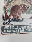 This metal sign is a perfect addition to any room, whether it's your office, garage, or any other room. The sign features a girl who loved raccoons, with a rustic and primitive style that will surely capture the attention of anyone who sees it. The sign is made of high-quality metal, which ensures its durability and longevity. The sign is easy to mount, and it can be hung on the wall or door. It measures 12 inches in height and 8 inches in width, making it the perfect size for any space. The sign is also decorative and indoor-friendly, which makes it a great gift for anyone who loves raccoons or wants to add a touch of rustic charm to their home.