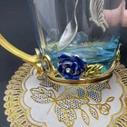 Elevate your tea-drinking experience with this stunning Glass Jeweled Enamel Tea Cup & Spoon Set. Handmade with intricate attention to detail, this set features a beautiful rose, flower, and butterfly design that will add a touch of elegance to any occasion. Crafted from high-quality glass and enamel, this set includes a tea glass with sparkling jewels and a decorated spoon . Perfect for all occasions, this set is not only functional but also a work of art. The butterfly theme make it a unique addition to your collection. Impress your guests or simply enjoy a cup of tea in style with this must-have set. I will pack with care and get it to you ASAP Thanks for looking !