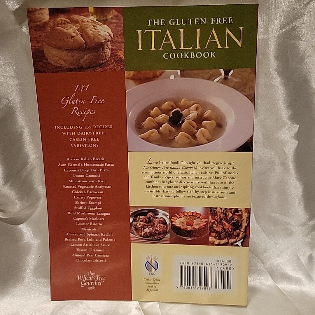 Illustrator:YesFormat:Trade PaperbackISBN:9780615219097Language:EnglishPublisher:Unknown PublisherNumber of Pages:205 PagesMPN:Does not applyTopic:Health & Healing / Gluten-Free, Regional & Ethnic / ItalianBrand:UnbrandedAuthor:Mary CaponeGenre:CookingBook Title:Gluten-Free Italian Cookbook : Classic Cuisine from the Italian Countrysidegtin13:9780615219097