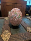 Godiva Pink Beaded Easter Egg, very rare. Item is used but in excellent condition. Beautiful pink trinket box with green sequin butterflies. 5" tall. 4" across.
