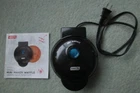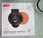 A fun way to make mini waffles ~ great for parties, kids, Halloween, etc. Black, blue indicator light, creates 4" waffles, model: DMWS001SB, 120V ~ 60Hz 350W, instruction manual - recipe guide included, used. From a clean, smoke-free home.