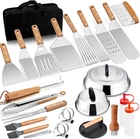 Griddle Accessories Kit BBQ Flattop Grill Tools Set for Outdoor Camping Cooking 【VALUE GRIDDLE SET】 Package Included: 2 x Melting Dome ( 12”, 9” ), Long Griddle Spatula, Perforated Spatula, Multipurpose spatula, Burger Turner, Fish Turner, Griddle Spatula, Slant Edge Scraper, Bench Scraper, Narrow Turner, Cast Iron Griddle Press, Pigtail Food Flipper ( Right Handed ), Kitchen Tong, Grill Fork, Meat Tenderizer, 2 x Basting Brushes, 2 x Squeeze Bottles, 4 x Egg Rings, Storage Bag, Screwdriver 【PREMIUM & HEAVY DUTY】Our Grill Tools Set is made of high quality stainless steel, Which is food grade and heavy gauge, No worry any toxic materials into food, 1.5mm thick metal ensures holding heavy food without bending, Matte polished finish makes cleaning easily for less hassle, BUT NON-DISHWASHER SAFE, Smooth wooden handle without rough spots, Keep your hands safe during use, 3-rivet construction increase the strength, Will not easy to fall off, Sturdy enough for long lasting use 【NECESSARY GRILL SPATULAS】 With 9 versatile spatulas, You will become the grill master on every BBQ party, Thin beveled edge sliding great under the food, 45° angled structure ensure a comfortable grip and help to flip food easily, Slotted design allows grease to drain for healthy diet, Holes on the handle are big enough to hang, Multi-Purpose Spatula has a serrated edge for cutting meat and also works as a bottle opener, Griddle Scraper with clear scale for precise measuring while using 【MELTING DOME & GRILL PRESS】 2Pcs Melting Dome help to avoid smells to be mixed together and reduce splatter, Retaining food moisture well to keep food juicy, Large cover is easy to deal with multiple steaks or large amount of vegetables, Small Lid is ideal for grilling patties or keeping food warm, Cast Iron Burger Press helps to retain and distribute heat perfectly, Pressing out excess fat or liquid from meats, Grooves texture will leave attractive grill marks on food 【THE EXTRA GRILLS TOOLS】 The Meat Flipper can pick up the foods without twisting, Won’t leave marks on the meats, Meat tenderizer has ultra-sharp needles, Help you quickly pierce the meat, Marinating it with condiments to taste more delicious, Grill Tong is strong enough to grip a large chunk of meat, Sharp Grill fork can grab meat while slicing meat, With a practical Carrying Bag, Convenient to take it anywhere Product Description Joyfair Griddle Accessories Kit is made of heavy duty stainless steel, allows these griddle tools maintaining a long service life. Suitable for most food, spatulas for flipping meat, sausages, cutting dough, basting cover for melting cheese, steaming vegetable, etc. 1 Melting Domes 2 More Details 3 Multipurpose 4 Easy to Use 1 Griddle Press 2 Pigtail Food Flipper 3 Meat Tenderizer 4 More Useful Tools Design for Outdoor & Indoor Material Type Wooden Handles Material Wooden Handles Country of Origin China Is Dishwasher Safe No Item Weight 10.3 pounds Handle Material Wood Number of Pieces 26 Package Dimensions 17.2 x 12.76 x 4.72 inches Included Components function(f) {var _np=(window.P._namespace("DetailPageProductOverviewTemplatesJava"));if(_np.guardFatal){_np.guardFatal(f)(_np);}else{f(_np);}}(function(P) { P.when('A').execute(function(A){ A.on('a:truncate:po-attribute-truncate-3:updated', function(data) { var isTruncated = !data.truncateInstance.getIfTextFits(); var seeMoreElement = document.getElementById('po-attribute-see-more-id-3'); if(seeMoreElement) { seeMoreElement.style.display = isTruncated ? '' : 'none'; } }) }); })); 2 x Melting Dome, Long Griddle Spatula, Perforated Spatula, Multipurpose spatula, Burger Turner, Fish Turner, Griddle Spatula, Slant Edge Scraper, Bench Scraper, Narrow Turner, Cast Iron Griddle Press, Pigtail Food Flipper ( Right Handed ), Kitchen Tong, Grill Fork, Meat Tenderizer, 2 x Basting Brushes, 2 x Squeeze Bottles, 4 x Egg Rings, Storage Bag, Screwdriver See more Shipping Fast shipping is very important for us. Our expedited US shipping service is FREE. Your order will be shipped within 2 business days upon full payment received. Your order will be delivered within 2-3 business days after the handling time. Warranty & Returns 30-Day FREE Return Policy offered for unsatisfactory items. Options include: Refund or Exchange for another item. Contact us Customer satisfaction is our top priority. If you encounter any issues with our product, please don't hesitate to reach out to us. We are committed to ensuring your satisfaction and will go above and beyond to assist you. Your happiness is our goal! Thank you for shopping at our store.