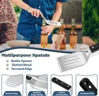 Griddle Accessories Kit Stainless Steel Flattop Grill Tools Set for Outdoor Camp 【VALUE GRIDDLE SET】 Package Included: 2 x Melting Dome ( 12”, 9” ), Long Griddle Spatula, Perforated Spatula, Multipurpose spatula, Burger Turner, Fish Turner, Griddle Spatula, Slant Edge Scraper, Bench Scraper, Narrow Turner, Cast Iron Griddle Press, Pigtail Food Flipper ( Right Handed ), Kitchen Tong, Grill Fork, Meat Tenderizer, 2 x Basting Brushes, 2 x Squeeze Bottles, 4 x Egg Rings, Storage Bag, Screwdriver 【PREMIUM & HEAVY DUTY】Our Grill Tools Set is made of high quality stainless steel, Which is food grade and heavy gauge, No worry any toxic materials into food, Dishwasher safe for less hassle, 1.5mm thick metal ensures holding heavy food without bending, Excellent heat resistant plastic handle, Effectively block the transfer of heat to keep your hands safe, 3-rivet construction increase the strength, Will not easy to fall off, Sturdy enough for long lasting use 【NECESSARY GRILL SPATULAS】 With 9 versatile spatulas, You will become the grill master on every BBQ party, Thin beveled edge sliding great under the food, 45° angled structure ensure a comfortable grip and help to flip food easily, Slotted design allows grease to drain for healthy diet, Holes on the handle are big enough to hang, Multi-Purpose Spatula has a serrated edge for cutting meat and also works as a bottle opener, Griddle Scraper with clear scale for precise measuring while using 【MELTING DOME & GRILL PRESS】 2Pcs Melting Dome help to avoid smells to be mixed together and reduce splatter, Retaining food moisture well to keep food juicy, Large cover is easy to deal with multiple steaks or large amount of vegetables, Small Lid is ideal for grilling patties or keeping food warm, Cast Iron Burger Press helps to retain and distribute heat perfectly, Pressing out excess fat or liquid from meats, Grooves texture will leave attractive grill marks on food 【THE EXTRA GRILLS TOOLS】 The Meat Flipper can pick up the foods without twisting, Won’t leave marks on the meats, Meat tenderizer has ultra-sharp needles, Help you quickly pierce the meat, Marinating it with condiments to taste more delicious, Grill Tong is strong enough to grip a large chunk of meat, Sharp Grill fork can grab meat while slicing meat, With a practical Carrying Bag, Convenient to take it anywhere Product Description Joyfair Griddle Accessories Kit is made of heavy duty stainless steel, allows these griddle tools maintaining a long service life. Suitable for most food, spatulas for flipping meat, sausages, cutting dough, basting cover for melting cheese, steaming vegetable, etc. 1 Melting Domes 2 More Details 3 Multipurpose 4 Easy to Use 1 Griddle Press 2 Pigtail Food Flipper 3 Meat Tenderizer 4 More Useful Tools Design for Outdoor & Indoor Item model number Griddle Accessories Set of 26 Item dimensions L x W x H 12 x 12 x 6 inches Material Type ABS Handles Product Dimensions 12 x 12 x 6 inches Material ABS Handles Country of Origin China Is Dishwasher Safe Yes Item Weight 4.71 Kilograms Handle Material Acrylonitrile Butadiene Styrene (ABS) Number of Pieces 26 Included Components Spatula Shipping Fast shipping is very important for us. Our expedited US shipping service is FREE. Your order will be shipped within 2 business days upon full payment received. Your order will be delivered within 2-3 business days after the handling time. Warranty & Returns 30-Day FREE Return Policy offered for unsatisfactory items. Options include: Refund or Exchange for another item. Contact us Customer satisfaction is our top priority. If you encounter any issues with our product, please don't hesitate to reach out to us. We are committed to ensuring your satisfaction and will go above and beyond to assist you. Your happiness is our goal! Thank you for shopping at our store.