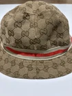 Elevate your style with this vintage Gucci fedora hat. Made with a durable nylon and polyamide fiber blend, this beige canvas hat is perfect for any occasion, whether you're traveling, attending a party, or just out and about. The hat features the iconic Gucci logo pattern and is lined for added comfort. This unisex L-sized hat is perfect for anyone looking to add a touch of Italian designer style to their wardrobe. Whether you're going for a boho, classic, or retro look, this hat is sure to complement any outfit. Don't miss out on the opportunity to own a piece of Gucci history. This amazing hat is preowned and may show lite wear.