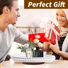 【Dimensions】:Our wood lazy susan organizer diameter is 12inch/30cm .The total height is 2 inch/5 cm. Large enough for you to use, you can place cups, condiment boxes, small forks, spoons and more. There are large beads on the outside of the lazy susan turntable, the diameter of the beads is 1 inch/2.54 cm,featuring a farmhouse Bohemian style that meets your decorative needs. 【Gorgeous Beaded Tray】:This beaded lazy susan is made by high quality solid wood mixed with high density composite wood which is sturdy and durable. The non-slip mat on the bottom will protect your table from being scratched. It's Safe and wearable, not easy to deform or break, and its surface is polished so smooth that it won't scratch your hands or things, which allows you to use for a long time. Have NO strong odor. 【Wide Application】:It is not only a wooden lazy susan spice rack, but also can be used as makeup organizer, drink/snacks organizer, ideal for bathroom, bedroom, office or anywhere that you need additional organization. 【360°Rotating Tray】:The beaded kitchen turntable is in the shape of round, designed with beads on its surface and a rotatable bottom, white or brown as the main color, simple but elegant, bringing you a nice using experience. The kitchen lazy susan turntable can rotate 360 degrees. Our farmhouse round lazy susan is surely an eye catching and a conversation piece. Place it as a centerpiece on your kitchen counter, dining table, entry way table and MORE! 【Perfect Gift】:Give our special beaded lazy susan to your special ! Perfect farmhouse table decor for Birthdays, Christmas, Weddings, Anniversaries, Parties, Office, House Warming etc. Also nice addition to your kitchen counter, dinning table, coffee table, entry way and MORE! 【Good Service】:If there is any damage or dissatisfaction with the decorative beaded lazy susan, feel free to us! It is our responsibility to the quality you deserve.