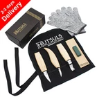Hutsuls Wood Whittling Kit for Beginners - Razor Sharp Wood Carving Knife Set in Beautifully Designed Gift Box, Whittling Knife for Kids and Adults (8 Pieces) Great Wood Carving Set for Beginners: a whittling knife; a curved hook knife, or spoon knife; a chip carving knife, or detail knife; a leather strop; a polishing compound; cut resistant gloves; a knife roll bag. Easy to Hold & Use: The handles are ergonomically designed and made of ashwood, which will allow you to work many hours without feeling fatigued. Simple to begin spoon, cup, bowl, or kuksa carving. The possibilities are endless with Hutsuls whittling kit High Quality Wood Carving Kit: These are green and long lasting wood carving knives. Razor sharp blades right out of the box are made of carbon steel and will serve you years of whittling wood Wood Carver Gift Ideas: Hutsuls wood carving tools are packed into a beautifully designed box. These whittling tools set is a great gift idea for son, grandson, father, husband, or grandfather for a Birthday, Hanukkah, or Christmas Friendly Customer Support: Hutsuls is providing not only a great spoon carving kit but excellent and reliable support for our customers. We designed these wood carving tools for beginners to meet the needs for your incredible woodworking projects The Wood Carving Kit is made with Hutsul traditions and culture in mind For many centuries, Hutsuls, an ethnic group of western Ukraine and Romania, carved various wooden items, including spoons, plates, canes, bowls, pieces of furniture, and more. Their experience and secrets passed down through the generations are implemented in the Hutsuls knives. Items Included The Hutsuls Wood Carving Tools include three knives (Detail, Hook, and Whittling) and additional items for protection and maintenance, including Anti Cut Wood Carving Gloves, Roll Bag, and a Wood Carving Knife Sharpener (Natural Vegetable Tanned Leather Strop and Polishing Compound). Suitability With the Hutsuls Wood Carving Tools Kit, you can do any wood carving job while enjoying a high level of comfort. All the knives from the wooden carving set have a design that is not only comfortable for a hand but also pleasing to the eye. Durability High-quality carbon steel used for making the knives ensures their durability for a very long time. Detail Wood Carving Knife: •Blade thickness — 1/16" •Blade length — 1 1/4" •Handle thickness — 1/2" •Handle width — 1 1/4" •Handle length — 4 7/8" Wood Carving Hook Knife: •Blade thickness — 1/16" •Blade length — 2 1/4" •Handle thickness — 1/2" •Handle width — 1 1/4" •Handle length — 4 1/8" Wood Whittling Knife: •Blade thickness — 1/16" •Blade length — 2 3/8" •Handle thickness — 1/2" •Handle width — 1 1/4" •Handle length — 4 1/8"