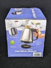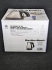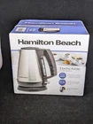 Introducing the Hamilton Beach 1 Liter Electric Kettle, a must-have addition to any kitchen. This stunning stainless steel and black kettle is perfect for tea lovers and enthusiasts. With its automatic shut-off feature, you can enjoy your tea without worrying about over-brewing. This Hamilton Beach kettle is designed to make your life easier. It has a sleek and modern design that will complement any kitchen décor. Measuring 7.09 x 9.06 x 8.31 inches, this kettle is compact and easy to store. It has a model number of 40901F and is manufactured by Hamilton Beach. Made of high-quality stainless steel, this kettle is durable and long-lasting. Get your hands on this Hamilton Beach 1 Liter Electric Kettle and enjoy your tea in style!