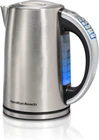 Hamilton Beach 1.7 Liter Temperature Control Electric Kettle, Water Boiler & Heater, Fast 1500 Watts, BPA Free, Cordless, Auto-Shutoff and Boil-Dry Protection, Stainless Steel (41020R) About this item 6 TEMPERATURE PRESETS. The variable temperature electric kettle brings water up to the perfect temperatures to make green, white, oolong, black and delicate herbal teas and French press coffee. The kettle beeps when the selected temperature is reached. HOLD WATER AT YOUR SELECTED TEMPERATURE. Press the keep warm button to maintain the desired temperature for as long as 30 minutes or until the electric tea kettle is removed from the base for serving. DURABLE, BPA-FREE, FOOD-GRADE STAINLESS STEEL INTERIOR: The BPA-free stainless steel interior of this electric water kettle provides years of long-lasting performance, is easy to clean and has a MAX fill line for easy filling. FAST BOIL WITH 1500 WATTS: Rapidly bring water to a boil so you can make yourself a quick cup of tea, hot cocoa or coffee without the long wait — perfect for hectic mornings or anytime you need hot water fast. PEACE OF MIND WITH AUTOMATIC SHUTOFF AND BOIL-DRY PROTECTION: The automatic shutoff feature with boil-dry protection keeps the stainless steel electric kettle from scorching. From the manufacturer Hamilton Beach products are thoughtfully designed to make your life easier. We use consumer insights, in-depth research and rigorous testing to deliver the best solution to your everyday needs. Whether it's preparing delicious meals and beverages effortlessly, or making your clothes look their best, you can count on the brand that has spent over 100 years creating products with you in mind. Hamilton Beach 1.7 Liter Variable Temperature Electric Kettle with LED Indicator The Hamilton Beach Variable Temperature Stainless Steel Kettle eliminates guesswork with 6 temperature presets for green, white, oolong, black and delicate herbal teas and French press coffee. Because it heats water with the touch of a button and reaches precise temperatures, you can make your favorite hot beverages with confidence. To hold water at your selected temperature, press the keep warm button to maintain the desired temperature for as long as 30 minutes or until the kettle is removed from the base for serving. The durable, BPA-free, stainless steel interior provides years of long-lasting performance, is easy to clean and has a MAX fill line for easy filling. 1500 watts of power to bring water to a boil fast Large water window makes it easy to keep track of the water level, and the blue LED lights look attractive and provide extra light on dark mornings Automatic shutoff and boil-dry protection 1.7 liter capacity holds enough water for the whole family Convenient cord-free serving makes it easy to pour beverages at the table Eliminate Guesswork with 6 Temperature Presets Both novice and daily tea drinkers will appreciate the kettle’s 6 settings, which bring water up to the perfect temperatures to make green, white, oolong, black and delicate herbal teas as well as French press coffee. The kettle beeps when the selected temperature is reached. Hold Water at Your Selected Temperature Press the keep warm button to maintain the desired temperature for as long as 30 minutes or until the kettle is removed from the base for serving. Durable, BPA-Free, Food-Grade Stainless Steel Interior The cordless electric kettle's stainless steel interior provides years of long-lasting performance, is easy to clean and has a MAX fill line for easy filling. Fast Boil with 1500 Watts Rapidly bring water to a boil so you can make yourself a quick cup of tea, hot cocoa or coffee without the long wait — perfect for hectic mornings or anytime you need hot water fast. Peace of Mind with Automatic Shutoff and Boil-Dry Protection The automatic shutoff feature with boil-dry protection keeps the kettle from scorching. Large Easy-to-View Water Window with Blue LED Lights You can easily keep track of the water level and you'll enjoy the attractive blue LED lights, especially on dark mornings.