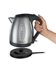 Product details This stainless steel kettle is compact and looks great on the counter. Not just for the kitchen, this kettle can be used in a home office or even a dorm room for hot beverages anytime. Serving at the table is no problem as the kettle lifts right off the 360-degree rotating base without the cord. The powerful rapid-boil system provides fast heating and the auto shut-off function helps keep the kettle from boiling dry. Additional features include a stay-cool handle, two water-level windows, a push-button lid, and an easy-pour spout to make filling and serving easy. Hamilton Beach 1.7-Liter Stainless Steel Electric Kettle, Black Accents, Model 40880: FAST BOILING WITH 1500 WATTS — This electric kettle boils up to 1.7 liters of water faster than a microwave and safer than a stovetop kettle. Make a quick, hot cup of tea or instant coffee anytime without the long wait — perfect for hectic mornings. AUTO SHUTOFF FOR PEACE OF MIND. The automatic shutoff feature with boil-dry protection keeps the Hamilton Beach electric kettle from scorching. EFFORTLESSLY MONITOR THE WATER LEVEL: You'll always know how much water is in the stainless steel electric kettle or how much you’ve added when refilling with the easy-to-view water window. CONVENIENT CORD-FREE SERVING. The cordless electric kettle lifts off the base to serve hot water at the tabletop or anywhere you're serving hot beverages. Also great for adding boiling water to the pot while cooking pasta, soups, stews and other recipes. INCLUDES REMOVABLE MESH FILTER: The removable mesh filter prevents mineral scale from getting in your cup. The filter removes easily for quick cleaning.