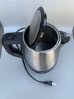 Enjoy a nice cup of tea or coffee with this Hamilton Beach 40998 1L Electric Kettle. With its sleek silver color and modern design, it will fit perfectly in any kitchen. The kettle has a 1L capacity and is electrically powered for your convenience. This water kettle is perfect for those who want to quickly heat up their water for tea, coffee, or any other hot beverage. The kettle is made by Hamilton Beach, a trusted brand known for its quality products. The model number is 40998 and it is classified under the categories of Home & Garden, Kitchen, Dining & Bar, and Small Kitchen Appliances. Get your hands on this electric kettle and enjoy a perfectly brewed cup of tea or coffee.