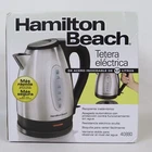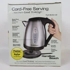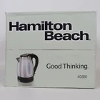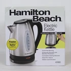 Hamilton Beach Stainless Steel Electric Kettle #40880 Faster Than a Microwave Safer Than a Stovetop Kettle 7 cup 1.7 Liter Capacity Automatic Shutoff with Boil Dry Protection On/Off Switch Power Indicator Light Push Button Lid Easy Pour Spout Cord Free Serving Water Level Window Concealed Heating Element Removable Mesh Filter New in Sealed Box