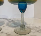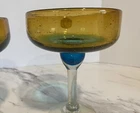 Beautiful Hand Blown Mexican Glassware Stemmed Margarita Glasses Set of 2 made from Recycled Glass in Mexico. These are new, still have the original sticker on them. Very nice. Heavy glass, authentic margarita glasses. Because these are handmade each will be unique in their own way. One glass is a little shorter than the other. Thank you for looking and supporting my small business.