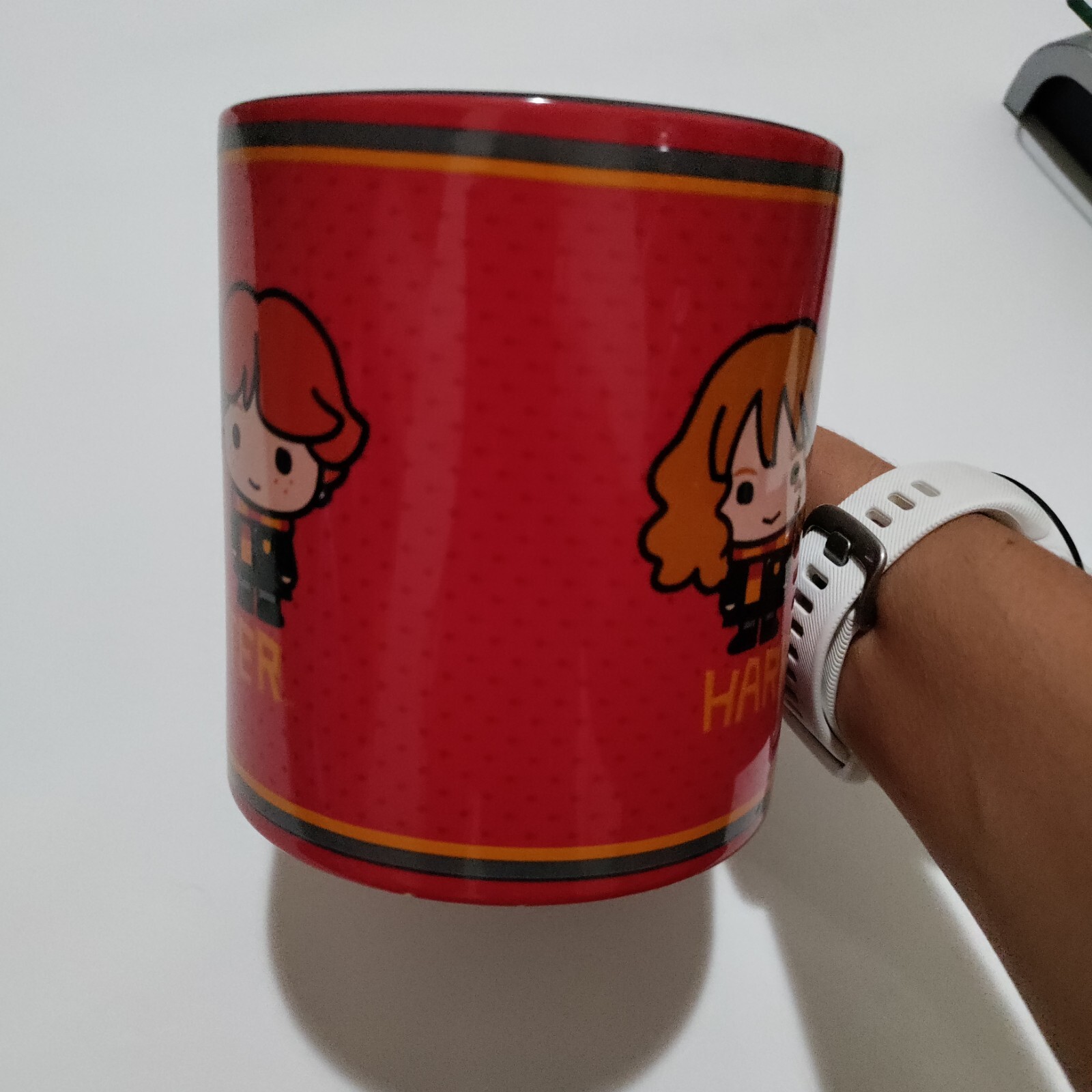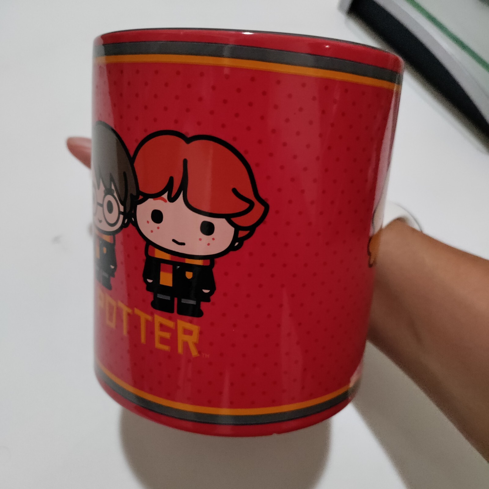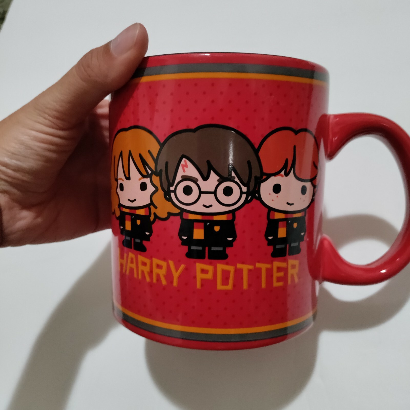This Harry Potter mug is perfect for any fan! The vibrant red color and iconic trio design make every sip feel magical. It holds a generous 20oz, stays sturdy, and keeps drinks warm. Great condition—love using it for coffee or tea!