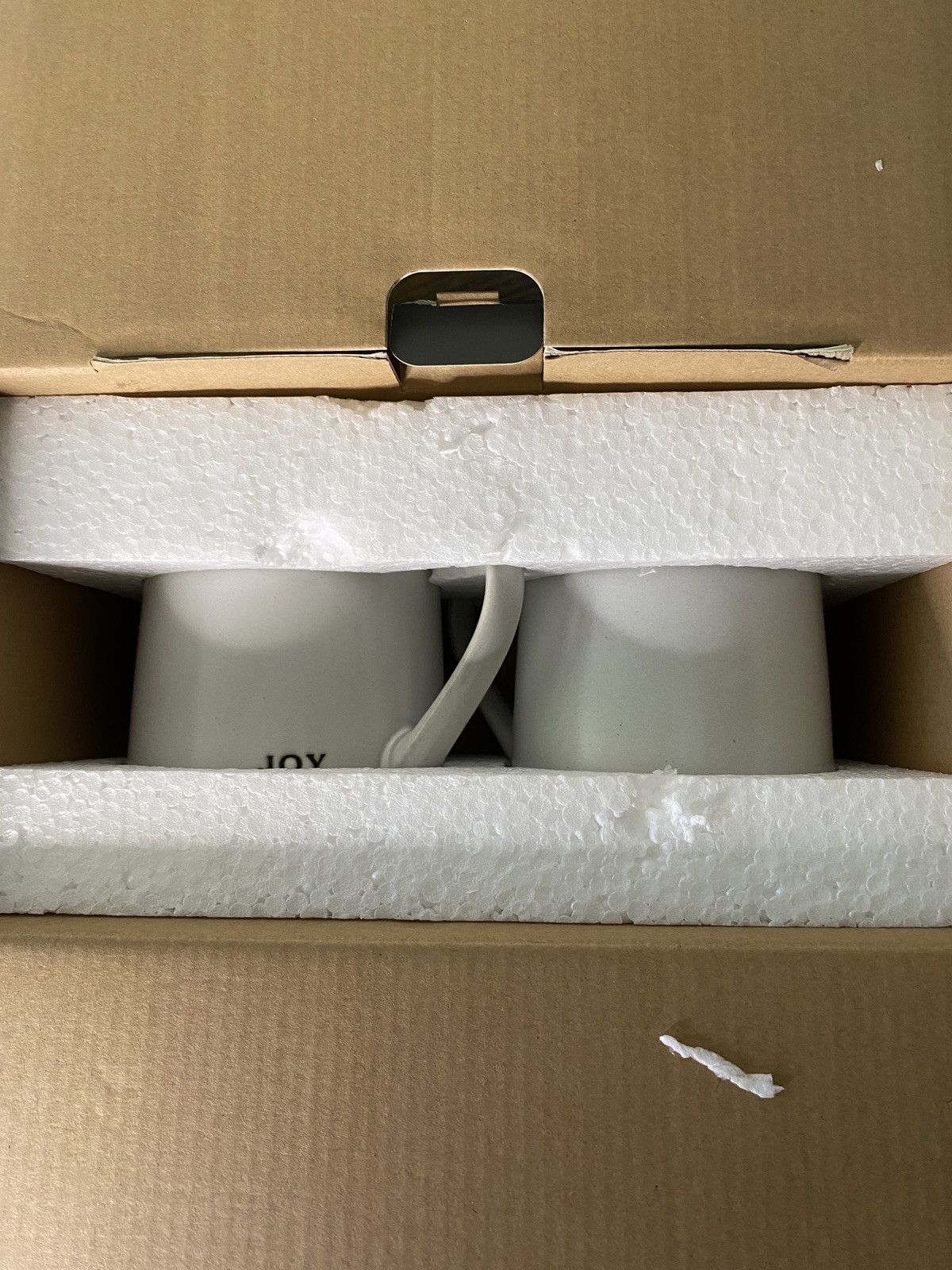 Hearth & Hand by Magnolia Stoneware 2 Mugs Joy Merry Set is a charming addition to your kitchenware collection, perfect for the Christmas season. The set includes two cream-colored mugs with the words "Joy" and "Merry" printed on them in a farmhouse style. Made of durable stoneware, these coffee mugs are microwave and dishwasher safe for convenience. Ideal for enjoying your favorite hot beverages during the holidays or as a thoughtful gift for a loved one.