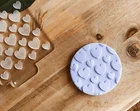 High quality, food grade embosser with very deep engravings. It is made from 4mm thick crystal clear perspex/acrylic - this makes it sturdy and long lasting. The engravings are deep and very easy to work on with any kind of play-doh, dough, clay and other materials as cutter and cookie cutter. You can use them to create lovely and awesome cookies, cupcakes, fondants and more. Surprise your guests and family with unique artistic cookies made with a little help from Drukowanko :) You can buy only the embosser or an embosser + 5 cutters that I present in the photos. How to use? Just use your favorite dough, roll it how thick you like (best results you can get with a few mm thick dough), stamp the embosser and use your cutters to cut-out any shape that you love. The surface of embosser is non-sticky, but if you need any help just use a little flour on the dough. How to clean? Please clean only by hands, please don't use dishwasher. Best to use with just a normal dishsoap with normal cleaning technique. Dimensions of the product - 85x85mm, dimensions of the desing - about 80x80mm Of course feel free to contact me if you have any questions or wish to order a custom made stamps, cutters or anything that you see in my shop :)