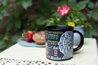 This mug will make you shiver (when you add ice) and perspire (when filled with boiling water). On the cold mug you'll admire the signature and iconic silhouette of Alfred Hitchcock, cinema auteur. Add a hot beverage and his famous works appear-13 movie poster titles-as well as a quote from the Master of Suspense. This mug is your own movie marquis! The Birds ~ Dial M for Murder ~ The Lady Vanishes ~ North by Northwest Psycho ~ Rear Window ~ Rebecca ~ Rope ~ Spellbound ~ Strangers on a Train The 39 Steps ~ To Catch a Thief ~ Vertigo. Officially Licensed by MTK Company. 10 oz. ceramic coffee cup with a comfortable handle. All of our disappearing mugs come in a beautifully designed, colorful box. Heat activated color changing mugs are microwave safe, but not dishwasher safe. Hand wash only. Don't soak. Click the store link near the product title for more great gifts. UPG has presents of mind. This mug will make you shiver (when you add ice) and perspire (when filled with boiling water). On the cold mug you'll admire the signature and iconic silhouette of Alfred Hitchcock, cinema auteur. Add a hot beverage and his famous works appear â - 13 movie poster titles â - as well as a quote from the Master of Suspense. This mug is your own movie marquis! The Birds ~ Dial M for Murder ~ The Lady Vanishes ~ North by Northwest Psycho ~ Rear Window ~ Rebecca ~ Rope ~ Spellbound ~ Strangers on a Train The 39 Steps ~ To Catch a Thief ~ Vertigo 12 oz / 350mL. Disappearing mugs are not dishwasher safe but are microwave safe.