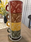 Hobby Lobby 4 Piece Coffee Mug set with Stand Fall Autumn