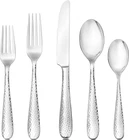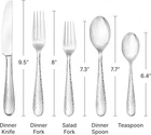 The handles are smooth, round, and comfortable, each utensil is a pleasure to hold. Featuring graceful curves, heavy-weight heft, and exceptional balance. Beautifully hammered on both sides to a bright mirror finish which shimmers when it catches the light. Creating an elegant and striking appearance, perfect for any occasion. Bergamo Hammered 60-piece cutlery set, service for 12: includes 12 dinner knives, 12 dinner forks, 12 salad forks, 12 dinner spoons, and 12 teaspoons On Dec 17, 2024 at 17:56:14 PST, seller added the following information: