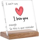 【HEARTFELT GIFTS】The loving gifts plaque comes with a wooden base and features a sentimental quote: "I can't say I love you enough, so this is your reminder." It is a romantic gift for him or her. 【SIZE & MATERIAL】Our inspirational desk quote measures about 4.7 x 4.7 x 0.24 inches without the wooden base, and it's made of transparent acrylic material. It has a textured surface and smooth edges. 【BEST GIFT IDEAS】Our I love you plaque is suitable for giving to your girlfriend, boyfriend, wife, husband, mother, etc. as a birthday gift, Christmas gift, Valentine's Day gift, Mother's Day gift, and wedding anniversary gift. 【MULTIFUNCTIONAL DISPLAY】This valentines day gift is suitable for both homes and offices. You can use it as home decor, bedroom decoration, bookshelf decoration, desk decoration, or place it on the windowsill, bathroom, fireplace, and as a photo prop. 【I LOVE YOU GIFTS】Utilize our charming and straightforward acrylic plaques to express your affection to your loved ones. These inspirational plaques serve as a reminder of your love and support, helping them find solace during difficult times. Product Description I CAN'T SAY I LOVE YOU ENOUGH, SO THIS IS YOUR REMINDER Valentines Day Gifts for Her Him 1pcs acrylic plaque with 1pcs wooden base. GIFTABLE: A perfect gift for the person you want to show your love to - lover, parent, friend. SENTIMENTAL: I can't say I love you enough, so this is your reminder. HIGH QUALITY: Transparent acrylic. SIZE: 4.7 X 4.7 X 0.24 Inches. I LOVE YOU GIFTS FOR DESK DECOR ROMANTIC GIFTS FOR YOUR LOVER HOME & OFFICE DECOR 0.24'' Thickness Our 'I love you' gift plaque is made of acrylic with textured transparency. At the same time, the thickness of 0.24 inches ensures that it is not easily broken and durable even if it is accidentally dropped to the ground. Clear Pattern The clear and full color printing makes our romantic gift desktop sign look very textured, and the red love design makes it express the emotion of love, not only as a Valentine's Day gift, but also as a motivational gift for friends and parents who are underrated. Wooden Base Our plaque comes with a wooden base, so you don't have to spend time and effort to find a suitable base, and the wood base is perfect for home and office decoration, whether it is a desk or a shelf. ROMANTIC GIFTS FOR HER HIM ON VALENTINES DAY, WEDDING ANNIVERSARY AND OTHER SWEET DAY