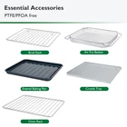 Upgrade your kitchen with the Air Fryer Toaster Oven Combo - a comprehensive solution for all your cooking needs. This 10 in 1 Air Fry Countertop Oven provides versatility and efficiency while ensuring your health and safety with its non-toxic enamel coating. Cook with ease using the infrared heating elements that evenly distribute heat, bolstered by the convection fan, ensuring your meals are cooked to perfection. The large 26.3 Quarts capacity allows you to roast a sizeable 5-6 lb chicken, toast six slices of bread, or even bake a 12-inch pizza, catering to any culinary whim. Operating at a swift and safe 1750W, the air fryer oven is designed for a seamless cooking experience, featuring an easy-to-use control panel that simplifies your kitchen tasks. Choose for a premium and efficient cooking adventure today! Versatile 10 in 1 Cooking Presets: This air fryer oven comes packed with 10 cooking presets, offering you a multitude of cooking options at your fingertips, be it baking a pizza or roasting a chicken. Safe and Non-Toxic Enamel Coating Interior Wall: 's air fryer oven's interior features a heavy duty enamel coating cavity, providing you with a healthier and safer cooking experience. (Only three side walls of the cavity are coated with enamel โ the crumb tray and the ceiling are not ) Efficient Infrared Heating Elements: Equipped with high-performing infrared heating elements, and a convection fan, our air fryer toaster oven ensures rapid, even, and efficient cooking every time. Large Capacity Oven: With its generous 26.3 Quarts size, this air fryer countertop oven can easily accommodate a 5-6 lb chicken, toast 6 slices of bread, or bake a 12-inch pizza. Perfect for your diverse cooking needs. Fast, Safe, and Easy to Use: The air fryer toaster oven combo operates at a quick and safe 1650W, complete with an intuitive control panel that makes your cooking journey effortless and enjoyable.