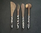 Set Includes:Serving Spoon, Cheese Knives & Spreaders, ForkHandle Material:WoodOccasion:BirthdayDepartment:AdultsHandle Pattern:Animal PrintColor:BrownFeatures:ReusableMaterial:Wood, Olive WoodCountry/Region of Manufacture:KenyaType:Fork SpoonBrand:UnbrandedTheme:AfricaItem Length:7 inNumber of Items in Set:4Wood Tone:Medium Brown Wood