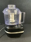 Pre-owned, everything works on it. Only thing wrong is one of the locking ears on one side is broken. Other Side will lock and it works. Introducing the KitchenAid Chef's Chopper Mini Food Processor, with a capacity of 3 cups. This electric food processor is perfect for all your culinary needs. It features a red color, with no bundle description, and is compatible with Energy Star. The manufacturer warranty is not included, but with its compliant Energy Star status, you can trust that this mini food processor is a reliable addition to your kitchen. The KitchenAid Chef's Chopper Mini Food Processor comes with one blade and is perfect for chopping, mixing, and blending. It has a power of 240W and is designed with the user in mind, making it easy to use. This food processor is a great addition to any kitchen and is perfect for those who enjoy cooking and baking.