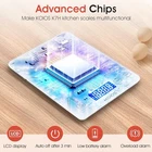 High Accuracy & Sensitive Sensors: Upgraded K7H digital food scale with built-in four sensitive load sensors can give you accurate weighing within a short time. Adopts anti-slip design, it improves safety and stability. Range of measurement: 0.1oz to 33lbs (3g to 15 kg). 1g or 0.1oz increments when adding ingredients. Included Battery & Type-C Charging: Powered by Type-C port and comed with 2 AAA batteries, you have more choice for charging. Press once to turn on, long press 3s to turn off. Kitchen scale turns off automatically if the displayed weight remains unchanged for 3 mins. 5 Weight Units & LCD Display: With the unit button, you can easily switch between different units: g, kg, lb:oz, fl'oz, ml to meet your different needs. Equipped with a large backlit LCD display with white fonts for easy reading. Tare Function & Smart Alarm: The Tare function subtracts the weight of the plate or container, easy to get accurate readouts of ingredients. Adopted advanced chip, food scale has low battery and overload indication to ensure the accuracy of measurement. Waterproof Tempered Glass & Easy to Store: Made of waterproof tempered glass, it can protect against food residue and water damage, makes wipe cleaning a breeze. 9.0 x 6.3 inch suitable size beats small cheap scales for it has enough platform for weighing various ingredients. Hidden hook design for easy storage.